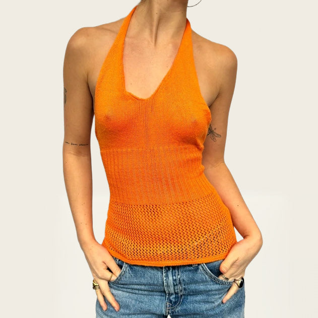 Oranje gehaakte haltertop