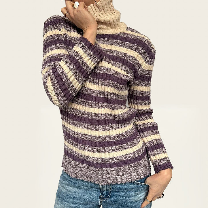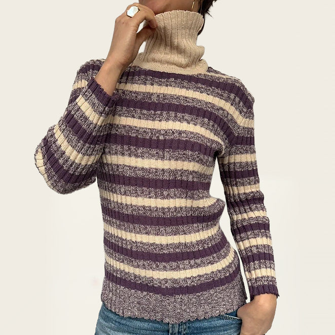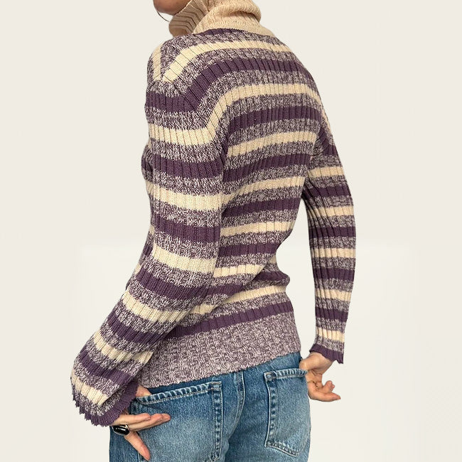 Vintage sweater in maat S met een flatterende hourglass fit. Zacht en lichtgewicht met een vrouwelijk silhouet dat de taille subtiel accentueert.