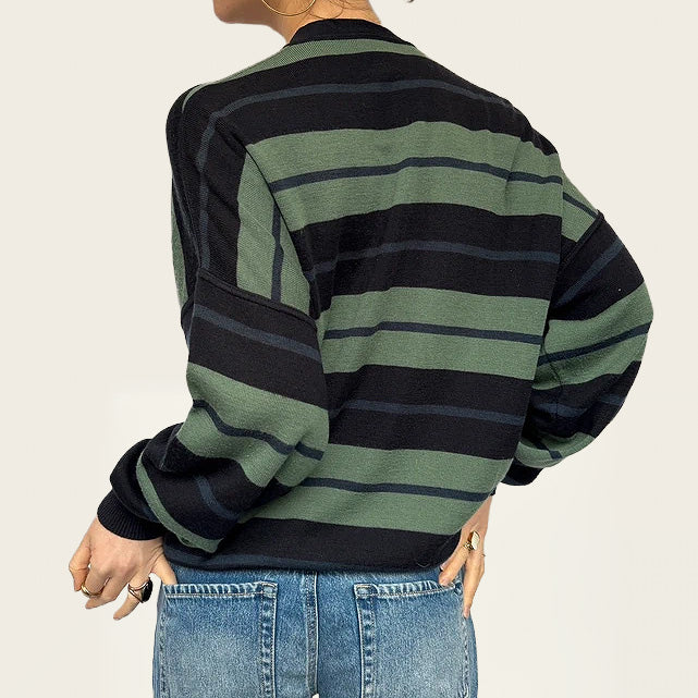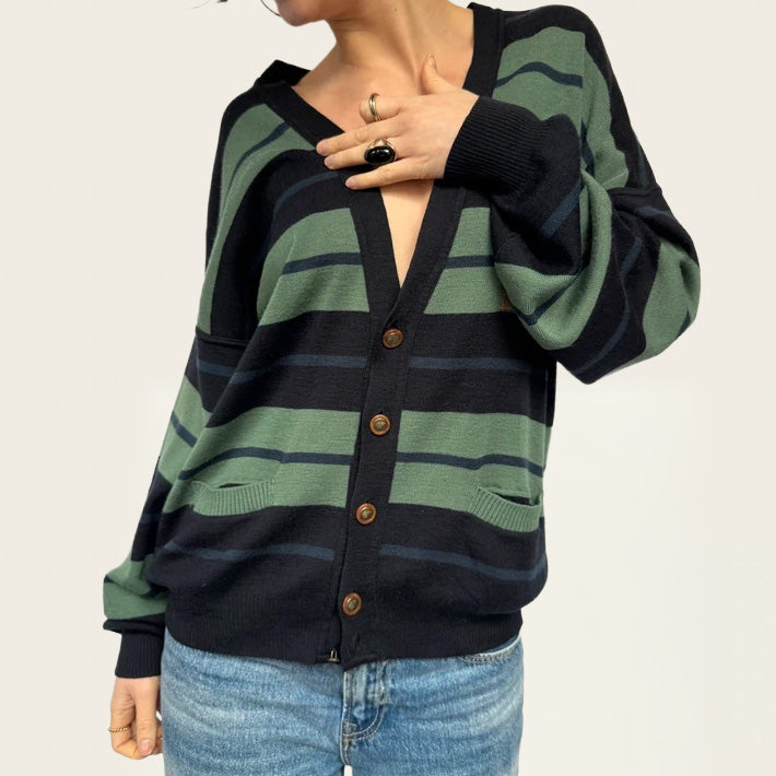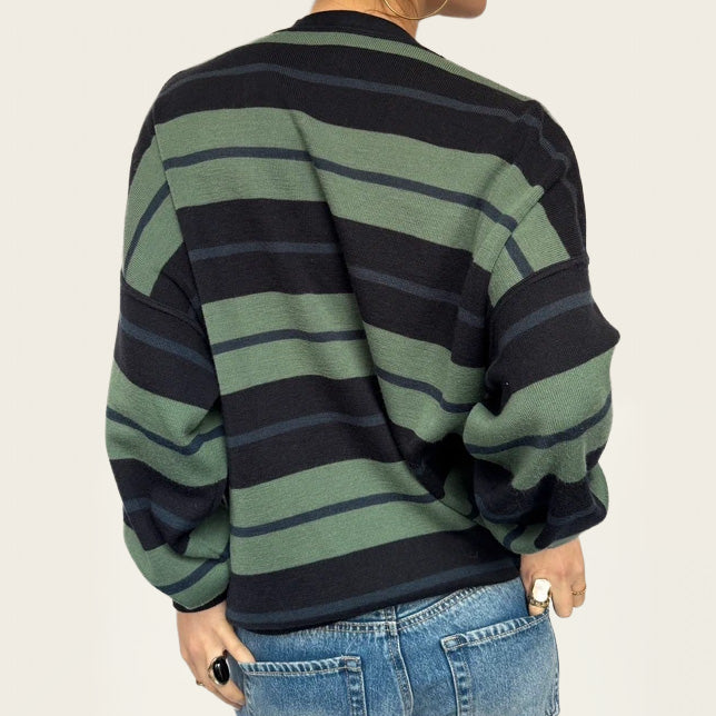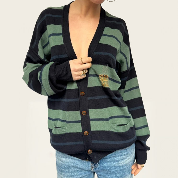 White Sails gestreept vest, gemaakt van een zachte wolmix, met een klassiek nautisch geïnspireerd streeppatroon en een relaxte, comfortabele pasvorm. Deze tijdloze knit is perfect om het hele jaar door te layeren — makkelijk te stylen met denim, nette broeken of over een jurk voor een moeiteloze coastal of minimalistische look. Een veelzijdige vintage essential die comfort, warmte en ingetogen elegantie combineert.